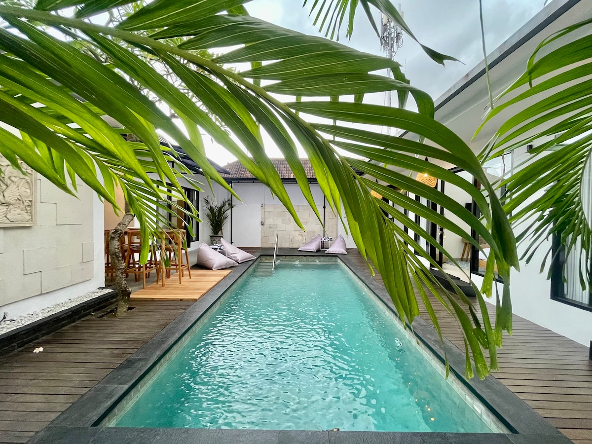 Prabangi vila . Svečiai apibūdina kaip išskirtinę . Ramioje vietoje. Su 24 valandų apsauga pėsčiomis iki parduotuvių ,paplūdimio ir restoranų , namų prižiūrėtojas kasdien turi licenciją veikti kaip trumpalaikę nuomą saugioje vietoje, pilnai įrengtą rinkinį, savo privatų baseiną. Galima išsinuomoti kaip 1, 2 arba 3 miegamuosius su NEMOKAMU BELAIDŽIU INTERNETU Nr. 3000 9298 03 03 trumpalaikei nuomai. Kadek kasdien yra viloje ir tvarko visą jūsų namą ir pasirūpinkite visais savo kasdieniais poreikiais apsipirkdami ir pan.