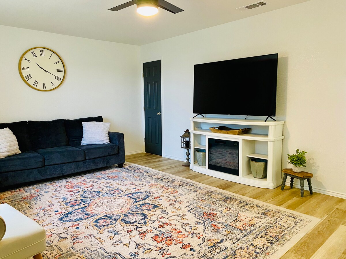 Šie žavingi, visiškai renovuoti ir atnaujinti namai, įsikūrę pietinėje Hobso dalyje (senesniame rajone), yra netoli Eunice greitkelio (18-ojo greitkelio) ir pietinio aplinkkelio. Šiuose namuose su 2 miegamaisiais kiekviename kambaryje yra dvi dvigulės lovos, o svetainės zonoje yra išskleidžiama sofa-futonas. Svetainėje yra šviesolaidinis internetas ir 50 colių išmanusis televizorius, todėl galite naudotis bet kuria savo prenumeruojama turinio paslauga. Jūsų patogumui skalbykloje yra skalbyklė ir džiovyklė.