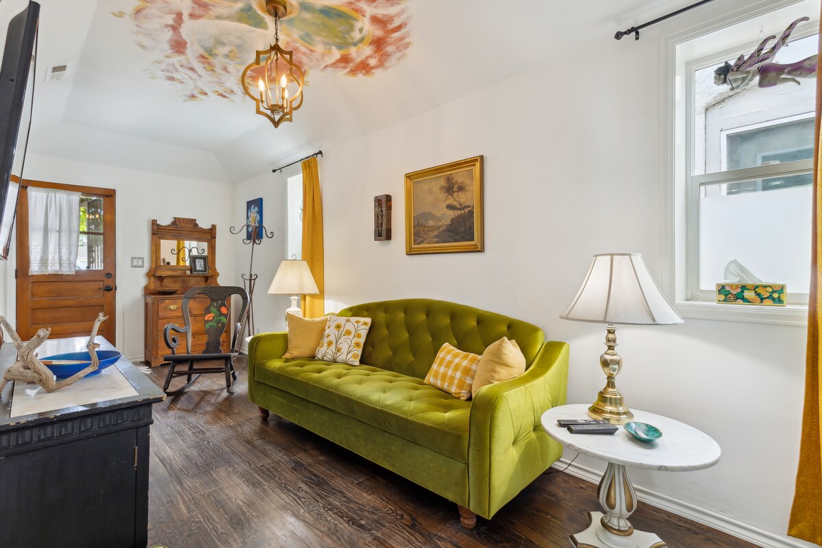 Tyrinėkite Denverio meno rajoną, tada lipkite plieniniais laiptais į šį eklektišką loftą, kuriame vintažinis žavesys susitinka su garų šluoste. Portugalijos stiliaus raštuotos plytelės sklandžiai dera su buteliuko kavos staliuku ir pramoniniu stilingu apšvietimu. Ši erdvė buvo šeimos projektas (Steve, Lisa ir Mick, kurie yra broliai ir sesuo) – karietos namas, pastatytas už mūsų 1900-ųjų namo netoli Denverio centro. Pastatas buvo suprojektuotas taip, kad imituotų senesnę architektūrą, kad tilptų į istorinį rajoną. Interjeras buvo suprojektuotas taip, kad viduje būtų vintažinis žavesys su atvirais plytų ir garo griebtuvais bei baldais, kad derintų vintažinio ir pramoninio dizaino elementus. Sukūrėme ir pastatėme konstrukciją, įskaitant detales, pvz., juodą vamzdį, sietyną, plieninį laiptų dėklą ir funky spinteles vonios kambaryje ir miegamuosiuose. Namuose yra rankų darbo daiktai ir kolekcijos iš mūsų šeimos. Vežimėlis skirtas tik svečiams, todėl yra viskas, ką matote, įskaitant maistą ir gėrimus. JO nori ir svečiai. Būsime naudingi atsakydami į visus klausimus apie rajoną ir kur pavalgyti bei išgerti. Istorinis Curtis parkas yra tarp dviejų komercinių koridorių: Welton ir Larimer (RiNo). Netoliese yra daug restoranų, amatų alaus daryklų, vyno daryklų, sidro ir ambulatorijų. Paimkite A-Train iš DIA į Blake ir 38-ąją stotį. Iš ten yra 12 minučių pėsčiomis arba trumpas „Uber“/„Lyft“ pasivažinėjimas. Netoliese esanti „B-Cycle“ stotis „33-i“ ir „Araopahoe“ Esu naujokas, bet mano brolis Mick priima „1880-ųjų karietą“ kitoje gatvės pusėje, kuri yra Kolorado numeris, todėl iš jo gaunu patarimų.