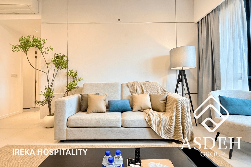 • Direct access to Hextar World Empire City Mall via secure basement link with onsite laundromat • Central PJ location – mins to IKEA, One Utama, Kidzania, supermarkets, banks, cafés, cinema & dining • Modern high-ceiling duplex loft with 2 balconies, cosy queen bed, organic mattress & pillows, equipped kitchen & quality appliances • 200Mb fibre WiFi, Netflix & work-friendly corner – ideal for staycations, business trips, weekend getaways & small families