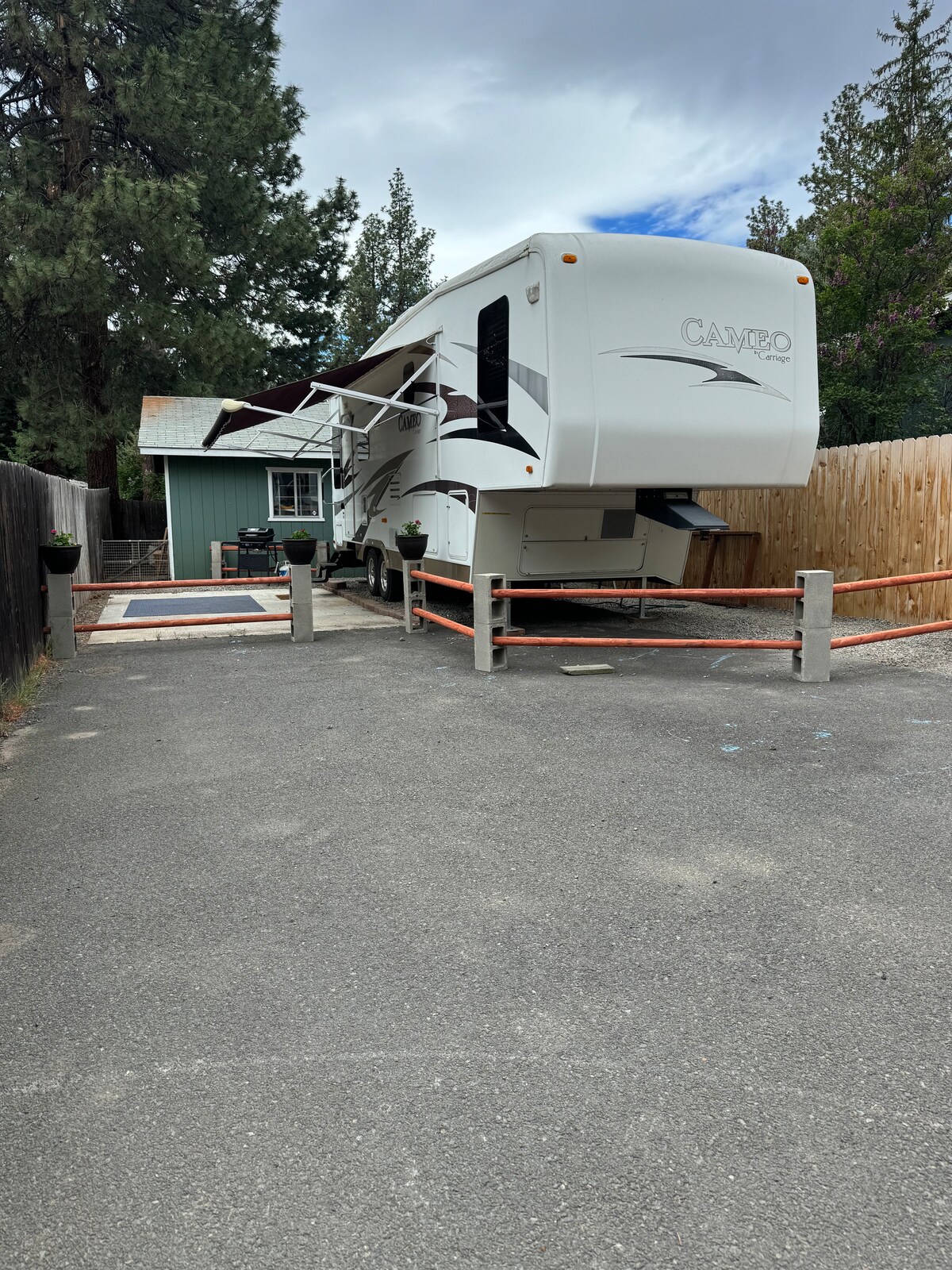 Pilnas RV prijungimas jūsų automobiliniam nameliui centriniame Oregone, rekreaciniame būste. Vanduo, kanalizacija, elektra ant žvyro trinkelės ramioje, natūralioje aplinkoje. Puikiai tinka centrinio Oregono poilsio galimybėms. Puikiai tinka ilgesnėms viešnagėms. Bacholor kalnas, Sunriver, Deschutes upė. Apsistokite ir žaiskite/dirbkite. Propano laužai yra būtini. Vasarą galioja priešgaisriniai draudimai.