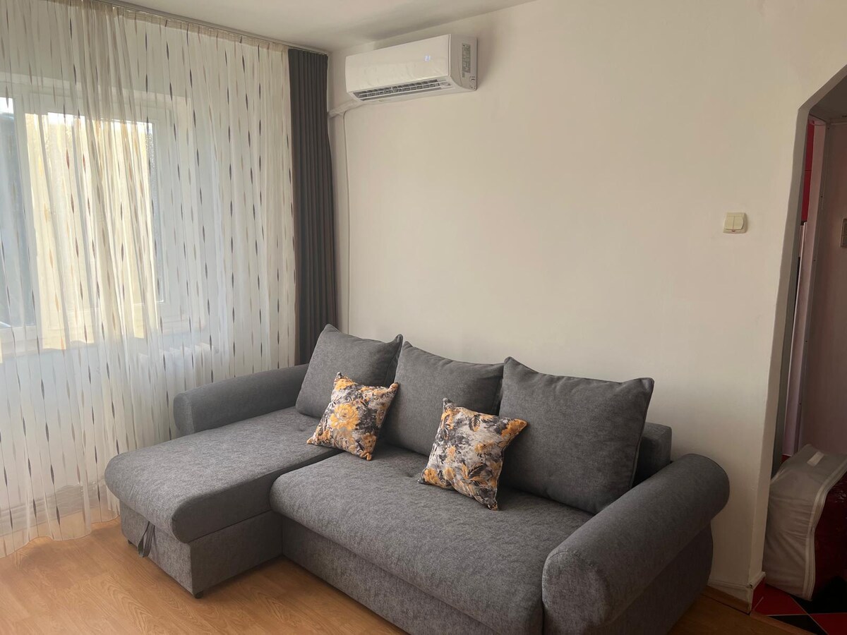3* * * butas, kurį patvirtino turizmo ministras, patogiai įsikūręs netoli centro, už 2 km nuo Citadela Deva ir už 0,5 km nuo Centrinės geležinkelio stoties. 40 kv. m ploto pirmame kvartalo aukšte. Jame yra virtuvė , vonios kambarys, 2 miegamieji (su dvigulėmis lovomis). Netoliese yra visą parą veikiantis prekybos centras, restoranai, terasos,žaidimų aikštelė vaikams. Pilnai įrengta virtuvė: virtuvės reikmenys, dujinė viryklė, šaldytuvas. Vonios kambaryje yra vonia, o kosmetika teikiama nemokamai.