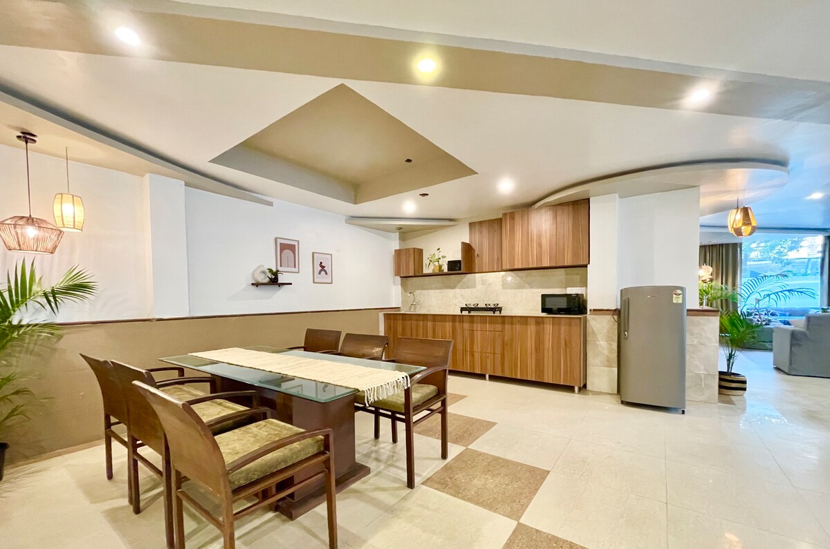 Enjoy a luxury stay in this entire 1100 sq. ft. private property featuring a spacious 400 sq. ft. bedroom, a fully private attached swimming pool (3 ft depth), and a 200-inch home theatre with OTT & TV channels. The suite includes a fully functional kitchen, large bathroom, high-speed internet, RO water, and music system throughout. DJ lights & smoke machine create a perfect party vibe. Couple-friendly, self check-in, safe area, parking available. Parties allowed for up to 1 - 3 guests.