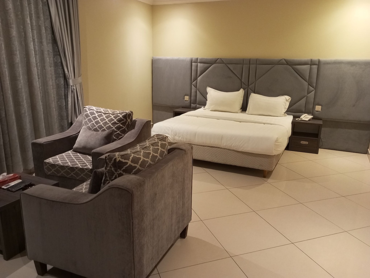 Settle in and unwind in Khobar with a tastefully furnished, immaculate, and secure stay designed to feel just like home. Enjoy essential comforts including a TV, air conditioning, daily housekeeping, non-smoking rooms, a cozy seating area, fire extinguishers, and CCTV in shared areas for added peace of mind.