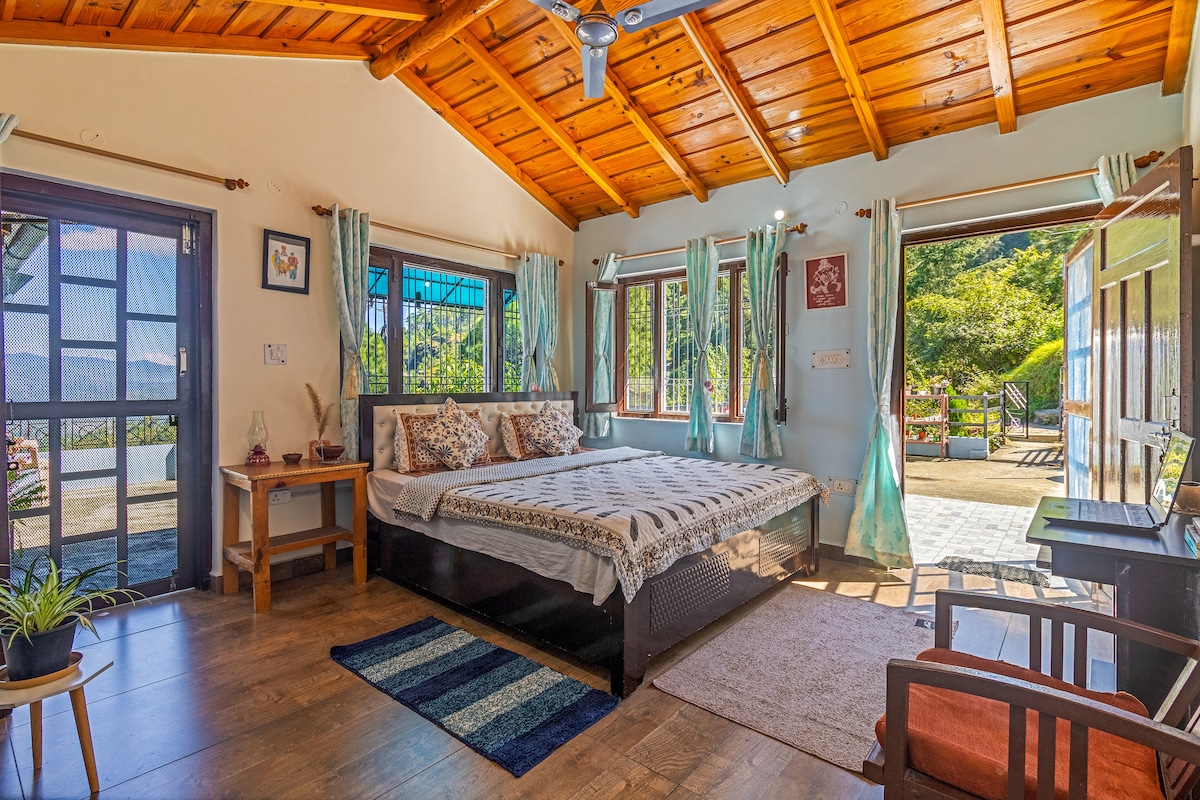 Šis žavingas kotedžas ramiame Himalajų kaime yra jūsų pabėgimas į ramybę, gamtą. Kad pasiektumėte būstą, turėsite nueiti 10-15 min. pėsčiomis. Šis poilsis kaime, kaip mūsų mylimos Dhyanasadan viešnagės pratęsimas, siūlo unikalų potyrį, kuriame galite sulėtinti tempą ir vėl užmegzti ryšį su gamta. Pasinerkite į paukščių giesmes, mėgaukitės kalnų vaizdais ir pasivaikščiokite vaizdingais takais. Mūsų apgalvotai suprojektuotas kotedžas sujungia kaimišką žavesį su jaukiais patogumais, puikiai tinkančiais pavieniams keliautojams, poroms ar šeimai