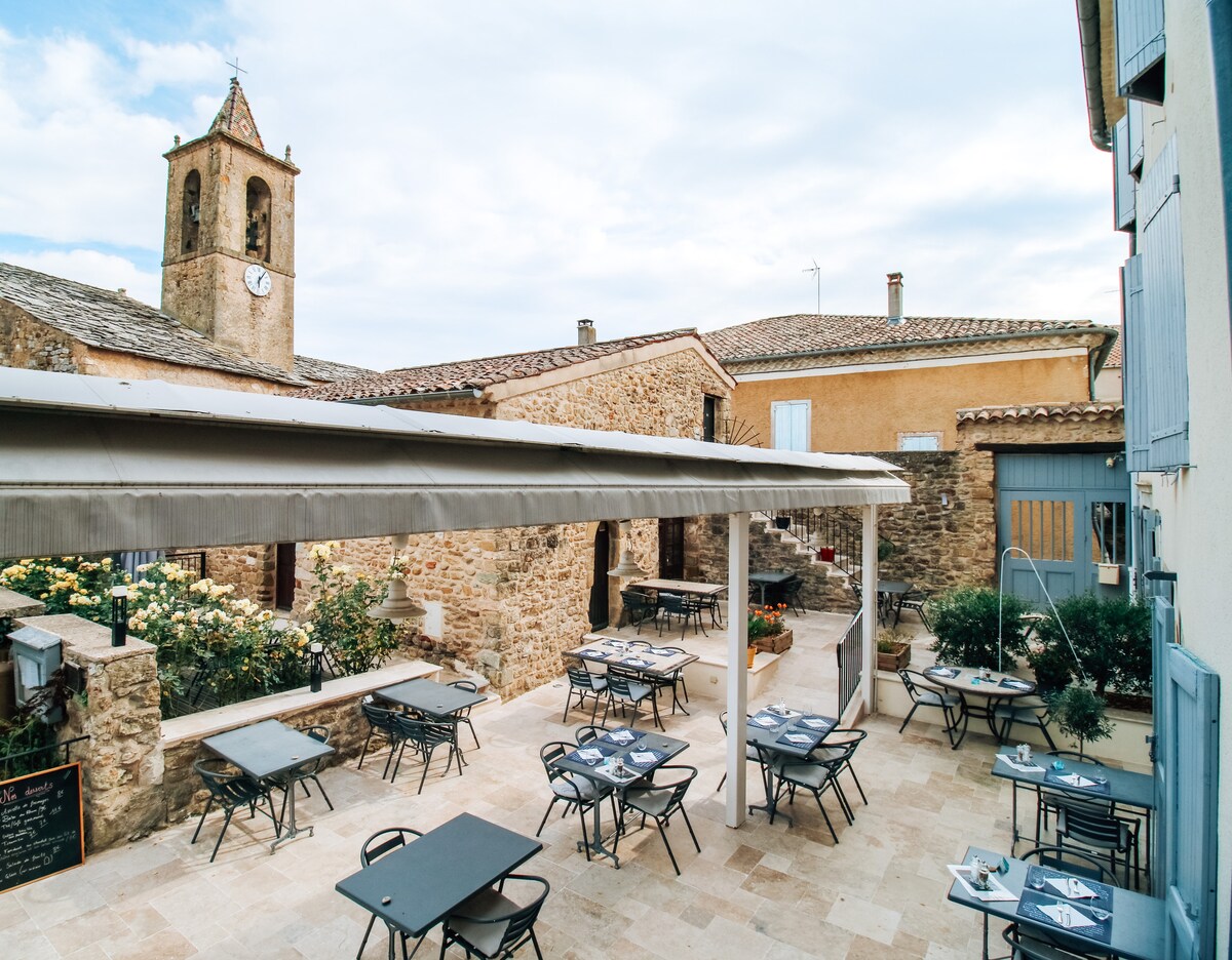 Prie Luberono vartų ir pačioje Pays de Forcalquier - Montagne de Lure širdyje, Hotel de l 'Auberge siūlo 9 kambarius 3 versijose: 6 dviviečiai, įskaitant 1 su privačiu SPA, 2 triviečiai ir 1 keturvietis. Visuose mūsų kambariuose yra vonios kambarys arba dušas, plokščiaekranis televizorius, nemokamas Wi-Fi, aukščiausios klasės patalynė su 30 cm atminties čiužiniu.