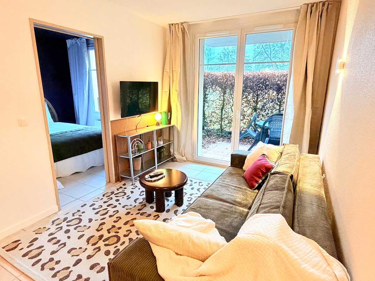 Sveiki atvykę į „Du Cep au Green“, jūsų mielą poilsį Levernois, vos už 5 minučių kelio nuo Beaune 🍇 Atraskite mūsų elegantišką butą 4 asmenims, idealiai įsikūrusį Levernois, netoli golfo aikštyno. Jaukus miegamasis, moderni svetainė ir įrengta virtuvė suteikia visus patogumus atpalaiduojančiai viešnagei. Puikiai tinka poroms ar šeimoms, ieškančioms elegancijos ir ramybės Laukia jauki atmosfera. Jūsų išskirtinė kelionė į Burgundiją prasideda čia!