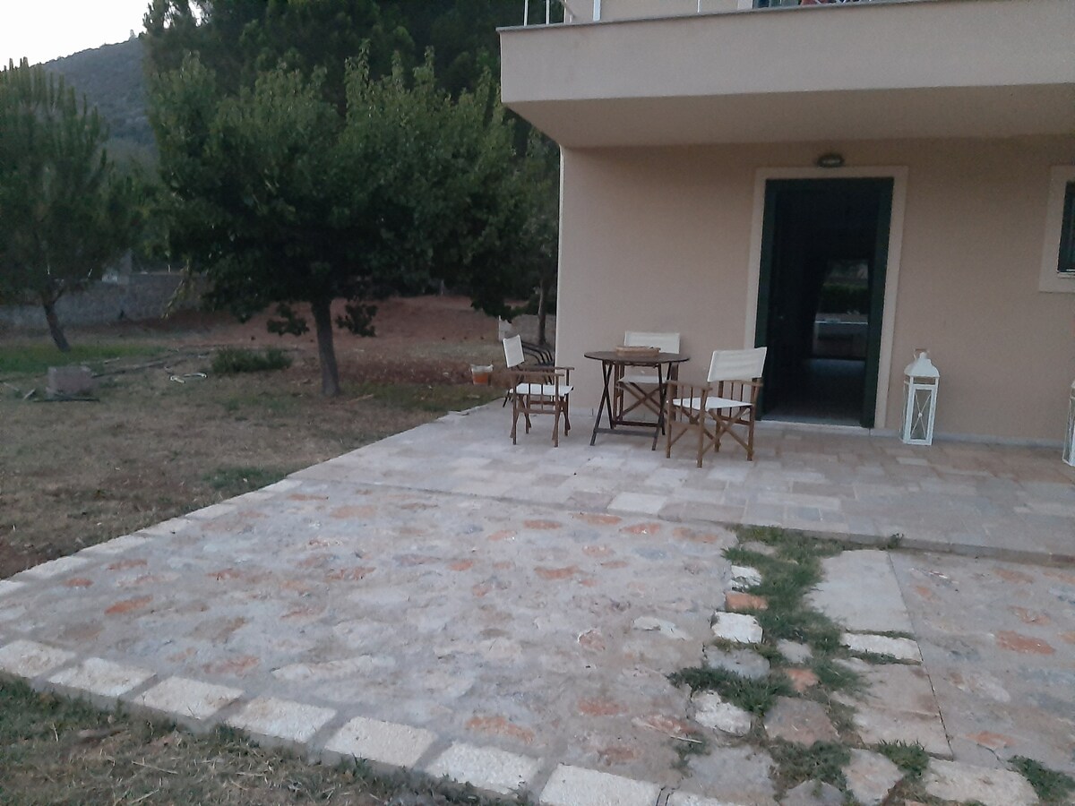 This first-floor apartment is ideal for families, couples, or small groups looking for a peaceful stay with easy access to major sights in the Peloponnese. The house includes: 2 bedrooms, οpen-plan kitchen/living room with bed, large private yard perfect for relaxing or family time, Fully equipped with all necessary appliances, furniture, and cooking essentials Enjoy the quiet surroundings and privacy of the countryside, while being close to restaurants, archaeological sites, and the sea