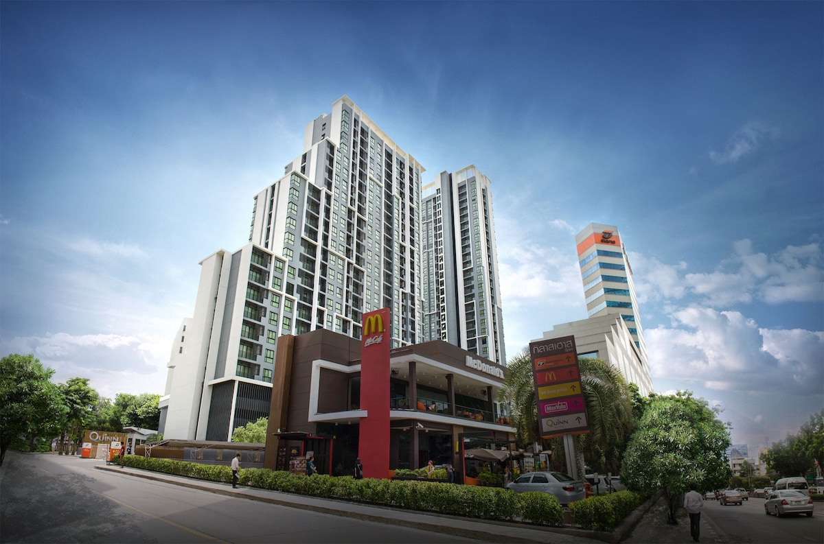 R1/Stilingas jaukus didelis miesto kambarys@Ratchada/Walk2Train