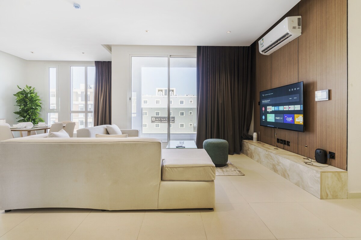 Profesionaliai valdomas prabangus butas – Nova Residence Project, Al Malka North Riyadh Šį butą profesionaliai valdo stabili įmonė, kuri specializuojasi butų ir atostogų namų su patarnavimu valdyme ir nuomoje, kad užtikrintų aukščiausius švaros ir kokybės standartus Siūlome patogią viešnagę su visą parą veikiančiu klientų aptarnavimu, užtikrinančiu sklandžią ir prabangią gyvenamąją patirtį. Užsisakykite dabar ir mėgaukitės komfortu bei prabanga su profesionaliu vadovu Butas yra 120 m2 ploto ir jį sudaro 1- Trys miegamieji su trimis lovomis 4 asmenims 2- 2 vonios kambariai 3- Integruota virtuvė 4- Platus poilsio kambarys su patogiu riteriu 5 valgomasis