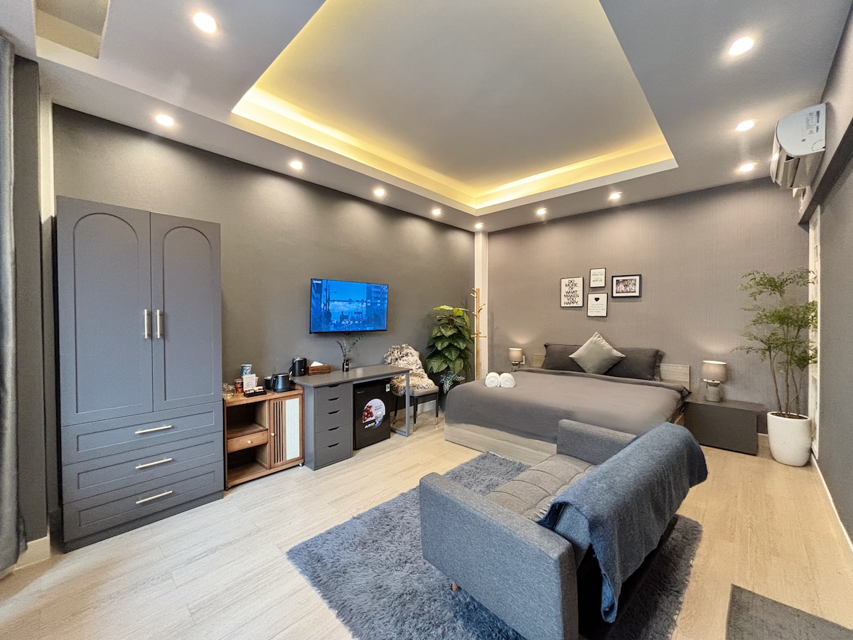 Ieškote vienatvės ir komforto? Mūsųsiūlopliušinę karalienėslovąir modernų vonios kambarį. Mėgaukitės apgalvotais patogumais: oro kondicionieriumi, plokščiaekraniu televizoriumi su transliacija („Netflix“), nemokamas Wi-Fi. Taip pat yra mini baras ir elektrinis virdulys. Ši studija, esanti viršutiniame aukšte su liftu, gali pasigirti kietmedžio grindimis, galimybe naudotis bendrais patogumais, įskaitant virtuvę ir valgomojo zoną, nemokamą skalbyklą – puikiai tinka tiek trumpoms atostogoms, tiek ilgesnėms viešnagėms.