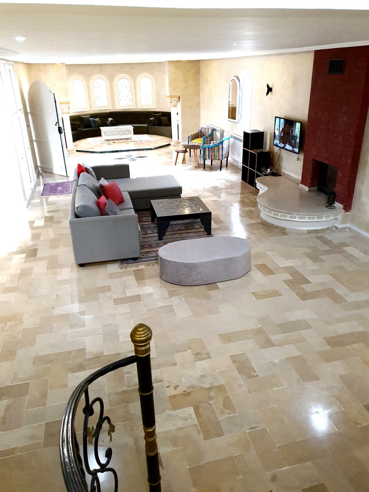 Visus jums reikalingus patogumus rasite mūsų didelėje viloje su 10/4 baseinu, atsipalaidavimu ir poilsiu garantuotu! Idealiai tinka švyturio kelyje tarp Sidi Yati paplūdimio ir Midoun, netoli visų patogumų, miesto centro ir paplūdimio. Netoli vilos už 300 m rasite visą reikiamą būtiniausių prekių parduotuvę , mėsinę, kepyklą, paštą, mečetę, restoraną, pvz., zammouri kepsnines.