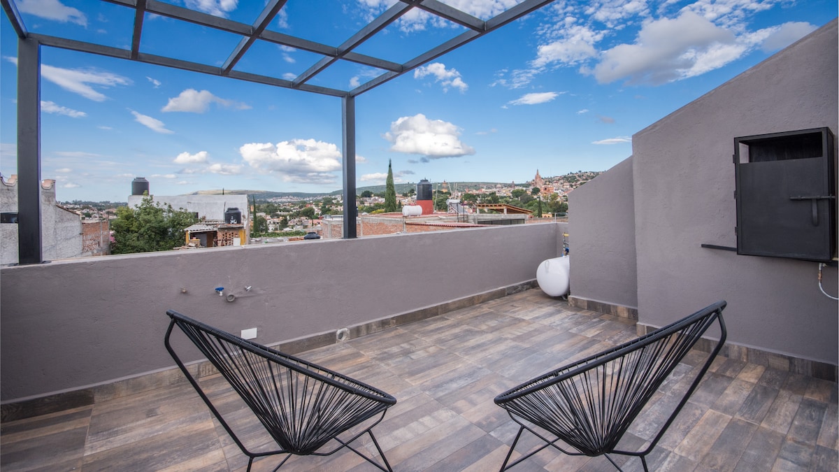 Loftas su daug šviesos ir integruota terasa, kad galėtumėte mėgautis geriausiais saulėlydžiais , jis yra erdvėje, kurioje yra daug šviesos ir visa reikalinga įranga, kad galėtumėte mėgautis gera viešnage San Miguel de Allende. 5 min. pėsčiomis iki parapijos ir sodo.