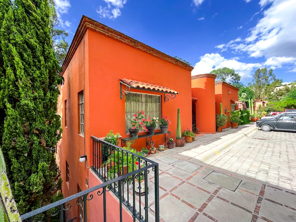 Mėgaukitės atostogomis į kolonijinį San Miguel de Allende kontrastingoje Raudonojo lofto pramoninėje elegancijoje. Šio šviesaus namo konstrukcija išryškinta atviromis plytomis ir vamzdžiais. Pirmame aukšte yra svetainė (su televizoriumi), valgomasis, virtuvė ir pusė vonios. Iki antro aukšto rasite gerai įrengtą karališką miegamąjį su televizoriumi ir A/C. Jūsų viešnagė Raudonajame lofte apima kabelinę televiziją, internetą ir kambarinės paslaugas kartą per savaitę.