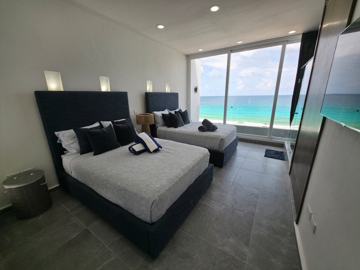 Neįtikėtinas mansardinis namas prie vandenyno, esantis pačioje Kankūno viešbučio zonos širdyje. Privati prabangi patirtis, šiame erdviame ir patogiame būste yra didelė terasa su geriausiais vaizdais, kokius galite įsivaizduoti, rojus prieš jūsų akis, įspūdinga Karibų jūra ir gražioji Nichupté lagūna. Erdvios baseino zonos, tiesioginis priėjimas prie gražaus Delfines paplūdimio, automobilių stovėjimo aikštelė, 24 valandas per parą veikianti apsauga ir labai rami, šeimai palanki ir saugi vieta. Vieta idealiai tinka bet kokiai turizmo veiklai.