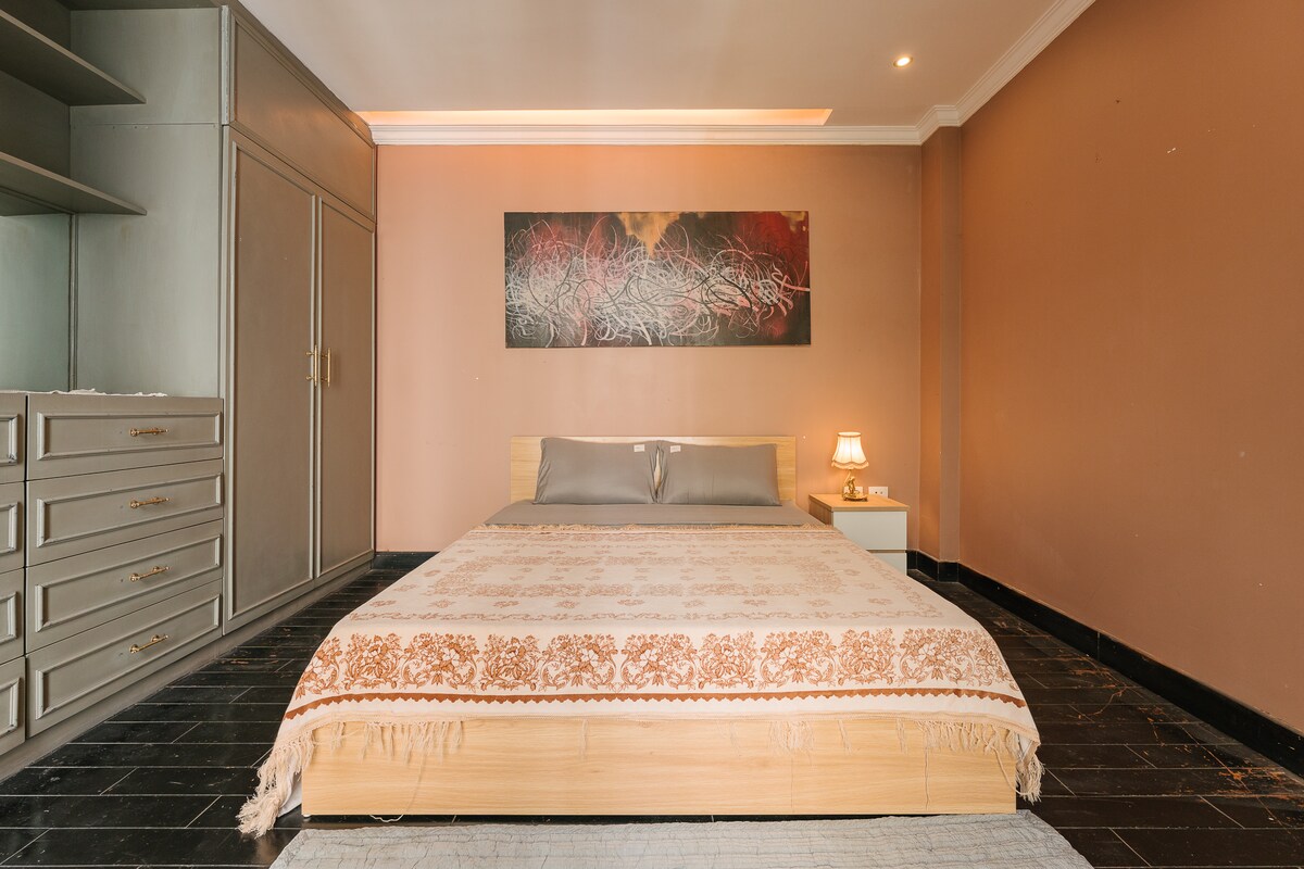 Beautiful 2-bedroom apartment situated on the 6rd floor of a building with elevator. You can take benefits of the large terrace, which is a common terrace with barbecue place but people rarely comes. Our place is right in the centre of Tay Ho distric, situating on an interesting street with lots of restaurants, bars, pub and convenient stores... 5 minutes walking to the lake and 10 minutes ride to Lotte commercial centre. 15 minutes to the Old quarter.
