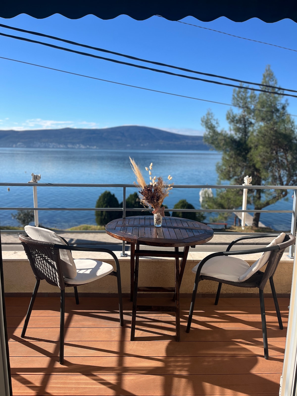 Mūsų jaukus butas yra Tivatas (Donja Lastva rajonas), 10 metrų nuo jūros. Iki Tivato centro, Porto Montenegro, pėsčiomis palei krantinę 20-30 minučių. Bute yra vienas miegamasis, svetainė su virtuve, terasa, iš kurios kasdien galite grožėtis nuostabiais Juodkalnijos kraštovaizdžiais, mėgaudamiesi puodeliu aromatingos kavos ar taure skanaus Juodkalnijos vyno. Butas yra priešais jūrą. Vasaros sezono metu kelias priešais mūsų namą yra gana judrus. Restoranas 5-10 min. pėsčiomis, prekybos centras 5 min. pėsčiomis
