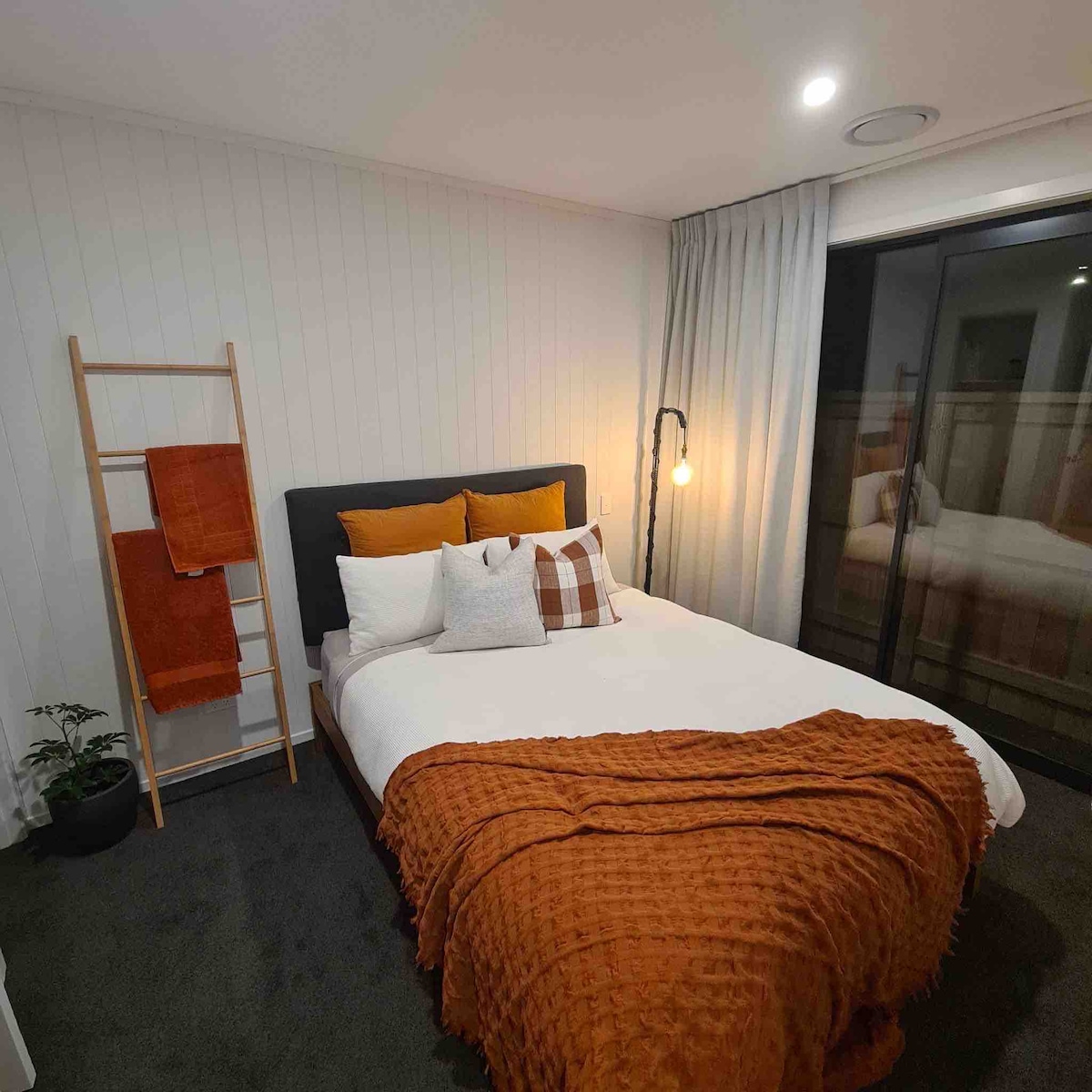 Atsipalaiduokite šioje ramioje, tylioje, stilingoje erdvėje po dienos, kupinos Kvinstauno veiklos! Mūsų svečių kambarys yra puiki vieta atsipalaiduoti po vakarienės kai kuriuose geriausiuose Naujosios Zelandijos restoranuose. Svečių atskiras kambarys yra bendras su mūsų namais, iš kurio atsiveria nuostabūs vaizdai į nuostabią kalnų grandinę, centrinį šildymą, privatų vonios kambarį, arbatos/ kavos įrangą, visiškai izoliuotą ir atskirą įėjimą, kad būtų užtikrintas visiškas privatumas.