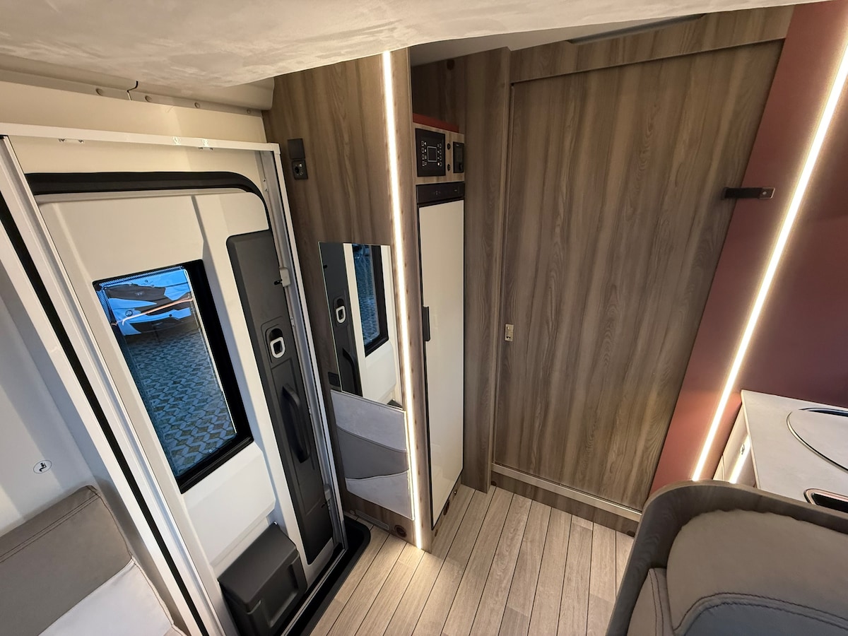 Camper con capacidad 4 personas. Con 2 camas dobles. De julio de 2025. Te sentirás como en casa: Baño completo con ducha y WC Cocina; gas, fregadero, frigorífico y menaje incluido Camas dobles de 145x200 cm o 135x195 cm Amplio almacenamiento con armarios funcionales Toldo lateral e iluminación ext. 150km/dia. (Km extra 0,25€/km) Baterías de litio. cierres de seguridad exteriores Thule, para una experiencia autónoma, eficiente y segura. SEGURO: Todo Riesgo y asistencia en carretera.