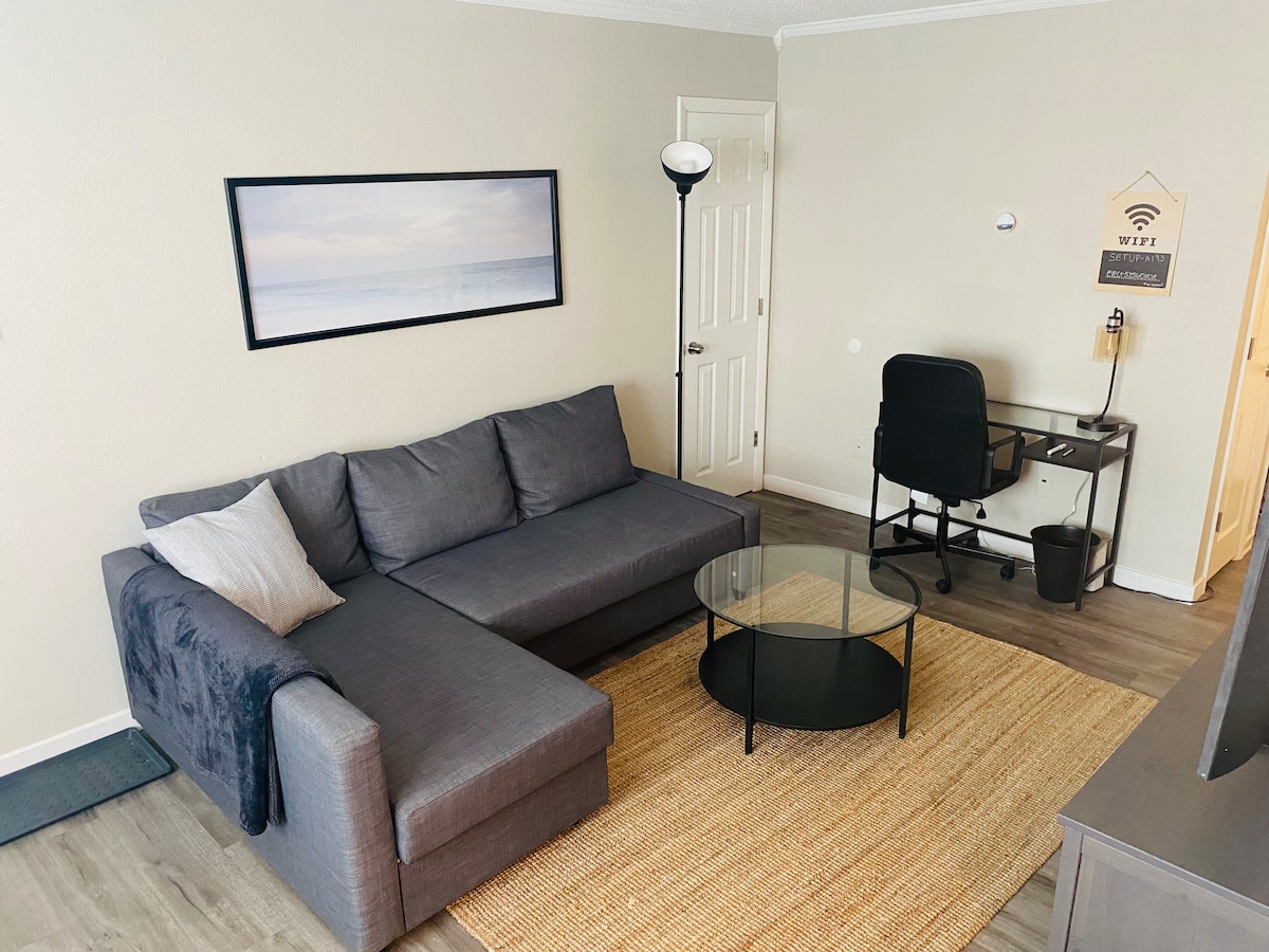 Šis 2 miegamųjų 1 vonios kambario jaukus kotedžas yra puiki vieta nedidelėms šeimoms. Įsikūręs 2 gyvenamuosius kvartalus nuo paplūdimio. Paplūdimys puikiai tinka šeimoms su vaikais. Šis butas yra sujungtas su 1 miegamojo nuoma. Galinis kiemas taip pat turi vieną atskirą pastatą. Puikiai tinka mažoms šeimoms. Priekinis kiemas aptvertas. Galinis kiemas ir skalbykla yra bendri su šalia esančiu svečių apartamentu. Leidžiama ne daugiau kaip 2 automobiliai 100 $ augintinio mokestis su išankstiniu patvirtinimu. ***2026 m. vasara – atvykimas tik penktadienį****