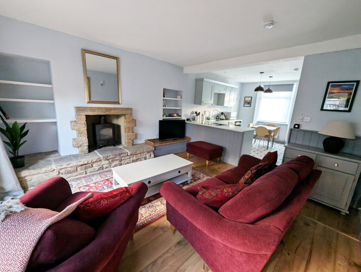 Nepriklausomybė jūsų namuose - Hayloft yra paslėpta mūsų XVII a. sodybos gale ir yra ypatinga vieta apsistoti. Įeikite į vidų, kad rastumėte virtuvę su šildomomis akmeninėmis grindimis ir sijomis virš galvos. Svetainėje yra vietos pavalgyti, pilnos knygų lentynos ir malkų degiklis jaukiems žiemos vakarams. Viršuje yra galerijos tipo miegamasis su didele 5 pėdų dvigule lova ir vonios kambarys su gilia laisvai stovima vonia ir dideliu dušu. Atsitraukimas nuo visko savo Jorkšyro skylėje.