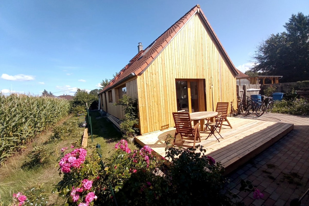 ... žiūrėkite iš lovos į vandenį, mėgaukitės ramybe ir tyla bei klausykitės buko miško šurmulio, leiskitės į ekskursijas dviračiais tiesiai ant vandens ir mėgaukitės gamta. Jūsų laukia gražus, modernus ir kaimiškas, mažos energijos namas su šiaudiniu stogu, Maroko plytelėmis, ąžuolinėmis grindimis ir molio gipso sienomis. Veiklai yra gražus didelis sodas su miško sūpynėmis, nemokama garinė pirtis, lauko dušas ir vonia, irklentė, irklentė ir 4 dviračiai.
