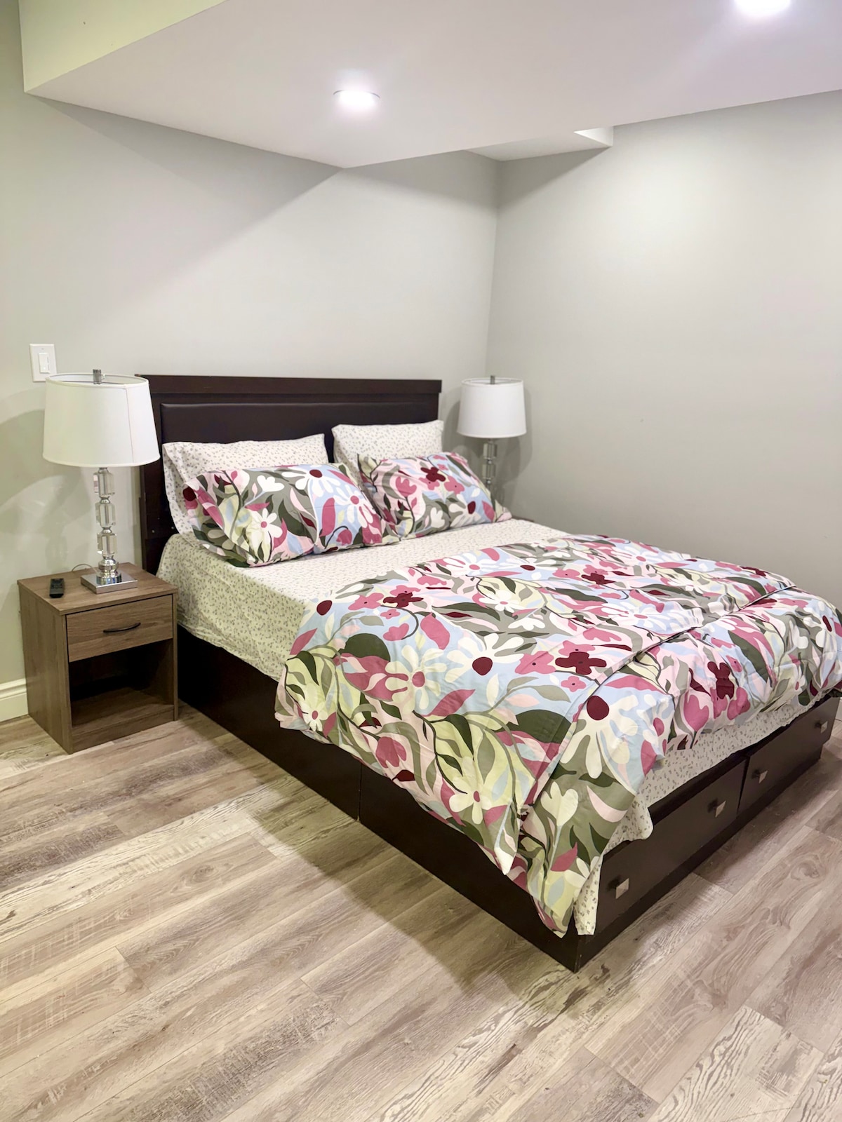 Welcome to your home away from home! This newly finished l cozy 2-bedroom 2-bath basement suite has a private entrance and is the perfect spot to relax and unwind. Tucked in a charming town of Paris Ontario, our space is clean, spacious, bright, comfortable and thoughtfully designed for a great experience. You'll enjoy a fully equipped kitchen with new appliances, a comfy living area, 2 modern bathrooms and a spot that is minutes from local shops, cafes, parks and trails.