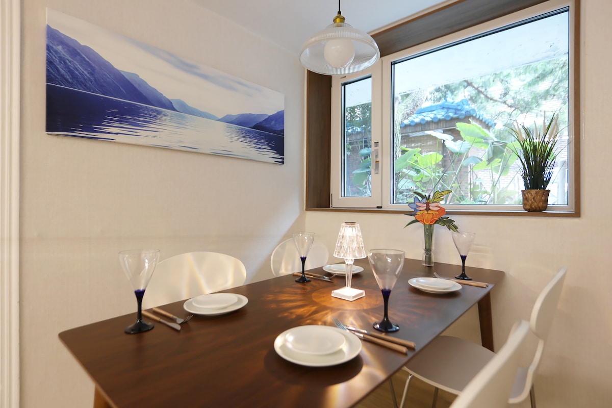 Sveiki atvykę! Vietinio namai! Leiskite pristatyti jums garų restoraną~ Pajuskite Europos romantiką. ✨ Patirkite unikalią kelionę erdvėje, kurioje laikas, atrodo, sustojo.💖 Mūsų namą su šviežiais vynmedžiais ir persimonų medžiais valdo pats pastato savininkas, o mes gyvename ketvirtame to paties pastato aukšte, todėl nedelsdami išspręsime jūsų nepatogumus. Keliaujame po pasaulį ir, remdamiesi savo patirtimi apsistodami įvairiose Airbnb platformose, siekiame svečiams suteikti unikalią patirtį. Išskirtiniai būsto pasiekimai💒 Grindys – prabangios „Terazzo“ marmuro plytelės (Šilta žiemą ir vėsu vasarą) Atviros lubos, suteikiančios aukštų lubų įspūdį Patogi poilsio vieta: vynmedžiai stebimi nuo birželio iki spalio Paverskite savo kelionę įsimintina patogiai ir emociškai! ❤️ Europos įkvėptas interjeras: ši erdvė suprojektuota su modernia, bet romantiška atmosfera. Sukūriau interjerą, kuris atrodo kaip kavinėje.