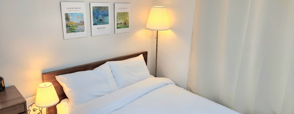 101 kambarys: „Švara yra svarbiausia!“ Mes tai valdome turėdami tai omenyje. Visa patalynė ir rankšluosčiai yra skalbiami aukštoje temperatūroje ir sterilizuojami bei lyginami aukštoje temperatūroje, todėl visada yra švarūs. Patalynė atitinka viešbučio kokybę Neseniai pridėjome sofą-lovą. Atnaujinkite erdvę, kad ji taptų patogesnė Jis atgimė kaip „jauki medienos atmosfera“ pasižyminti apgyvendinimo vieta. Tai 2 kambarių būstas, tačiau tai jauki erdvė, ir mes kruopščiai ją tvarkome ✨️išlaikydami švarą kaip svarbiausią prioritetą✨️. Rekvizitai ir išdėstymas gali šiek tiek skirtis priklausomai nuo sezono. Netoli Dunchon-dong stoties, prie kurios galima atvykti metro, ir yra pirmame ramaus gyvenamojo rajono aukšte.