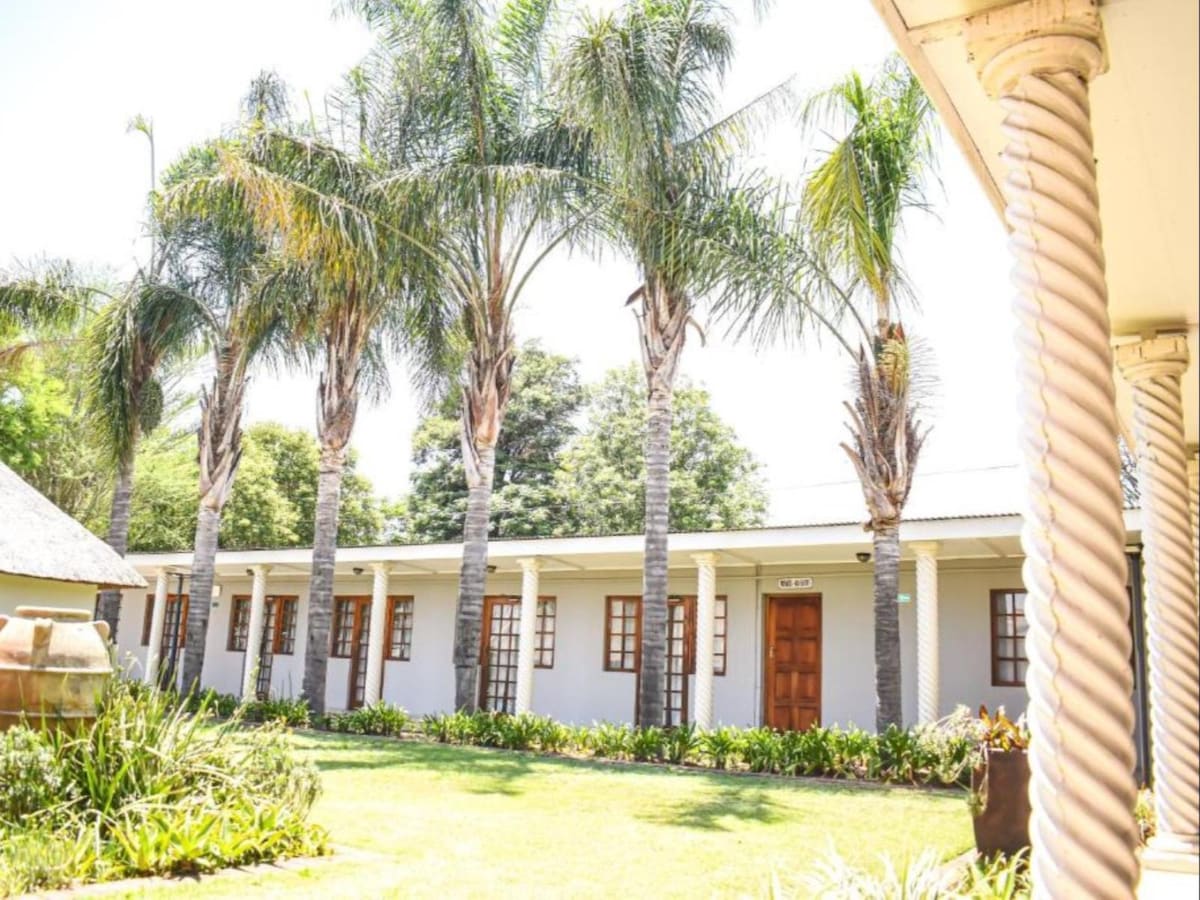 Kambaryje su oro kondicionieriumi yra dvigulė lova ir vonios kambarys su dušu ir tualetu. Kiekviename kambaryje yra televizorius su pasirinkta DStv, sėdima vieta ir Wi-Fi. Taip pat yra tiltas ir mikrobangų krosnelė. Patogumo sumetimais yra rankšluosčiai ir patalynė.
