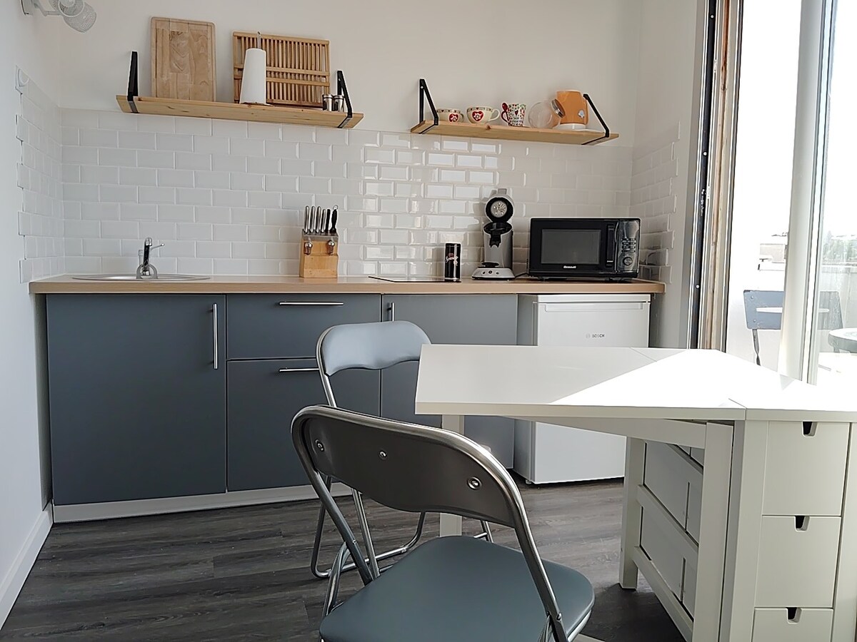 Mes patys jus pasveikinsime ir duosime raktus. Mes atkūrėme visą šį butą iš natūralios medžiagos! Jis įsikūręs vienoje iš paskutinių XIX a. vilų Arcachon . Viskas sukurta taip, kad jūsų viešnagė būtų kuo malonesnė - nuo pasveikinimo iki paslaugų kokybės Atvykus jūsų lovos paklotos, vonios kambaryje yra rankšluosčiai. Keliaukite šviesiai, mes rūpinamės likusia dalimi * Galite naudotis 2 dviračiais