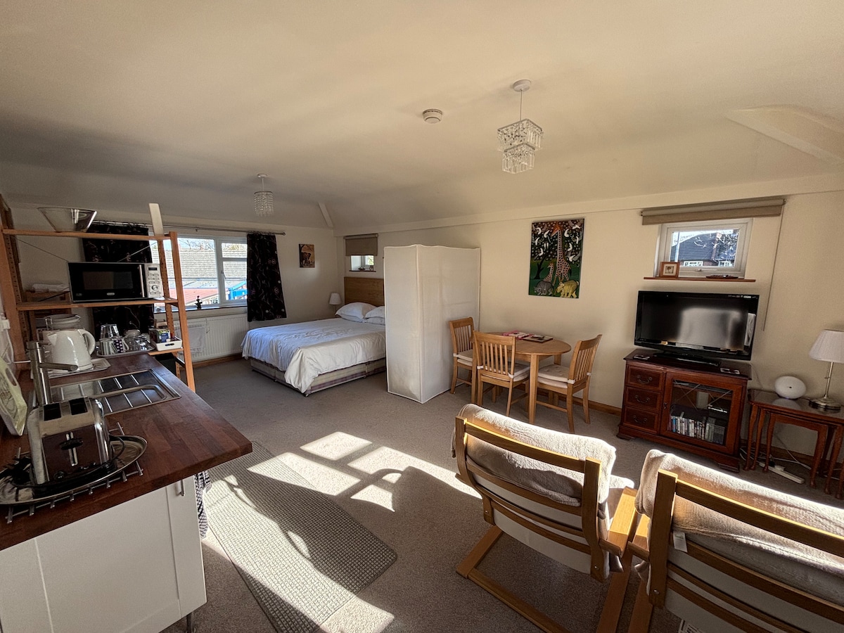 Ši puiki sodo kambario studija yra patogi atviro plano gyvenamoji vieta. Autonominis įėjimas su atskiru įėjimu. Pilnai įrengta viskas, ko gali prireikti patogiai ir maloniai viešnagei. Netoliese yra Hale kaimas ir kaimas. Dvigulė lova yra labai patogi su ančių ir pūkų pagalvėmis. Yra nedidelė privati terasa vasaros vakarams WI-FI galima naudotis nemokamai. Jokių valymo mokesčių. Oro uostas ir greitkeliai yra netoli Atkreipkite dėmesį, kad vidinė lubų erdvė yra 6’3’’