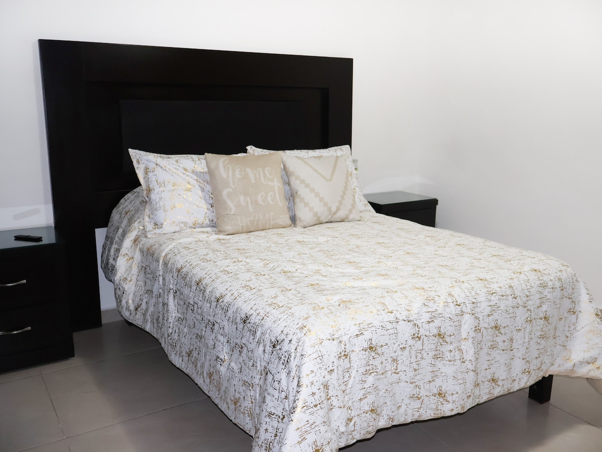 🏠 Visas buto priestatas apgyvendintam namui. Jame yra du miegamieji, vienas vonios kambarys su visais patogumais, saulės ir dujinis šildytuvas, išmanusis televizorius, Wi-Fi, visa virtuvėlė, skalbimo mašina ir bendras dengtas garažas su elektrinėmis durimis. Miega 1-4 asmenys. Puiki vieta; ligoninė 5 min., centrinis sunkvežimis ir komercinė aikštė 10 min., istorinis centras 20 min., Oxxo, vaistinė ir viešasis transportas už vieno kvartalo. 💯% pažįstama APLINKA. Rami ir prestižinė vieta, puikiai tinkanti poilsiui.
