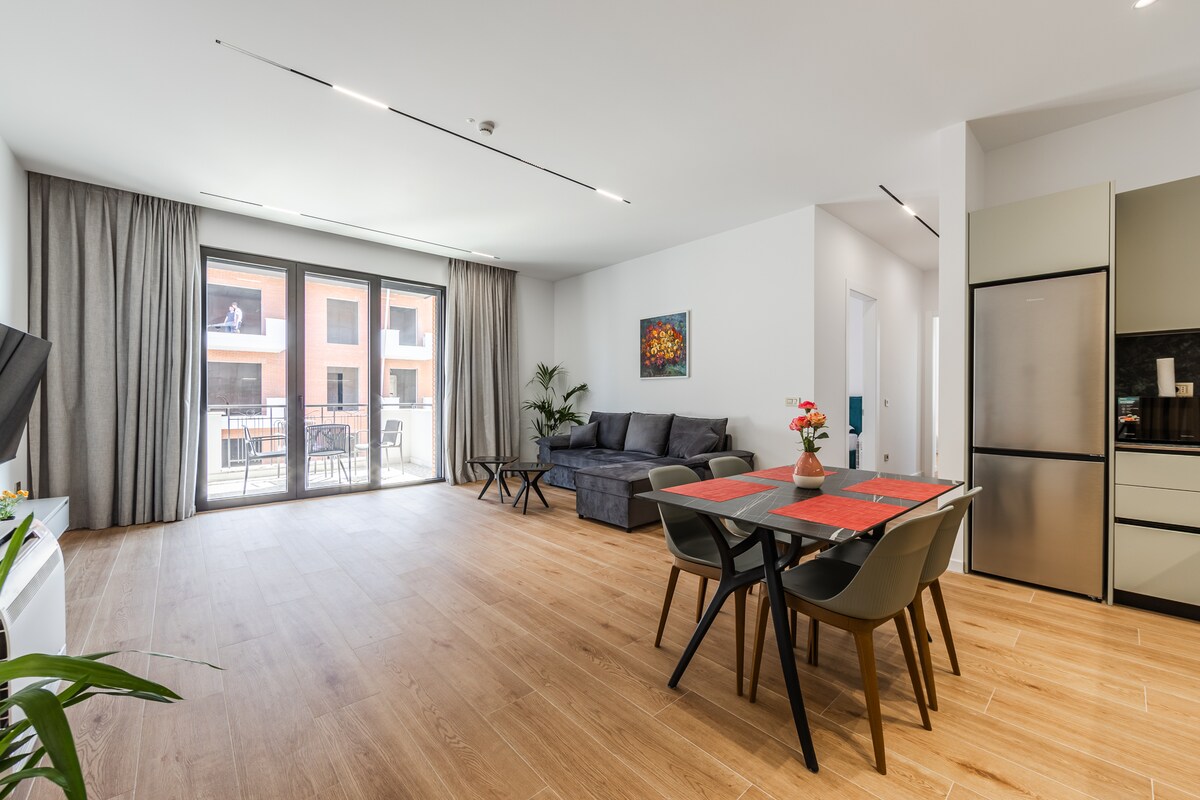 Sveiki atvykę į mūsų butą netoli triukšmingo Tiranos centro! Šioje žavingoje erdvėje yra daug natūralios šviesos, kuri apšviečia jos baldus ir sukuria šiltą ir patrauklią atmosferą. Bute yra 2 miegamieji , stilingas vonios kambarys, pilnai įrengta virtuvė ir jauki svetainė atsipalaiduoti po dienos tyrinėjant miestą. Įsikūrę privilegijuotoje vietoje, pėsčiomis pasieksite gyvybingas Tiranos gatves.