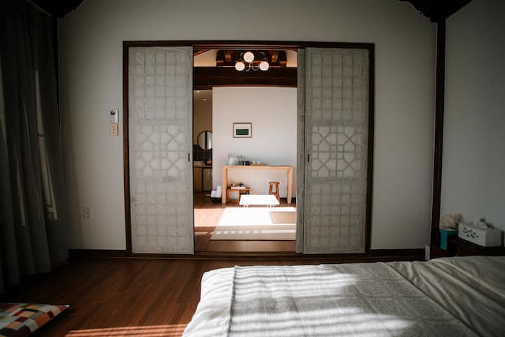 Hanok stiliaus namas / Privatus / Didelis sūkurinė vonia / 2 dviračiai / Oro pagalvės / Maršalo garsiakalbiai / Standby mi / Hwangnidan-gil / Tradicinis turgus / Viešbučio patalynė
