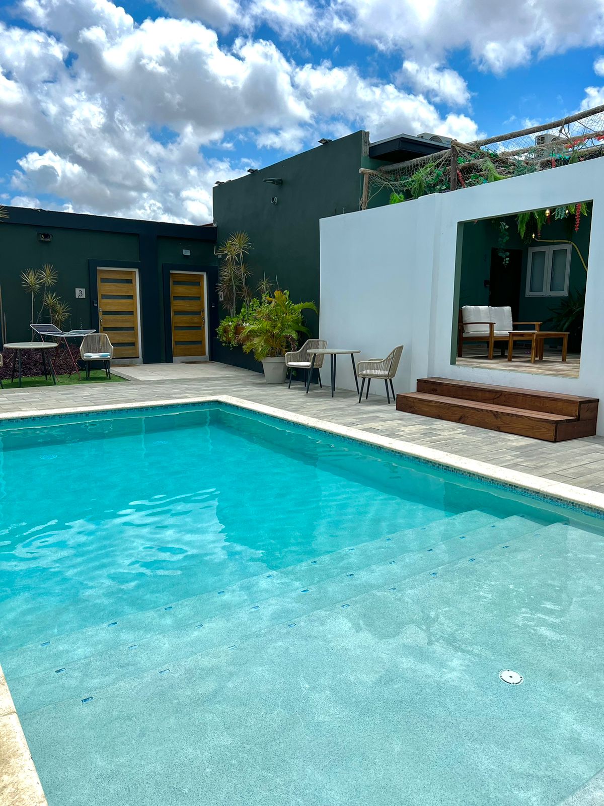 Tai puiki vieta pabėgti ir mėgautis balto smėlio paplūdimiais, gražiu vėjeliu ir karšta saule Aruboje. Nesvarbu, ar jums reikia poros pabėgti, šeimos atostogų, ar švęsti su draugais, nenusivilsite šiuo švariu, šviežiu, naujai pastatytu kompleksu. Naujai pastatytas baseinas yra nuosavybės centre. Įrengta baseino čiužinio gultai ir vejos kėdės atsipalaidavimui prie baseino. Kiekviename bute yra nešiojamos paplūdimio kėdės, paplūdimio rankšluosčiai ir vėsintuvas.