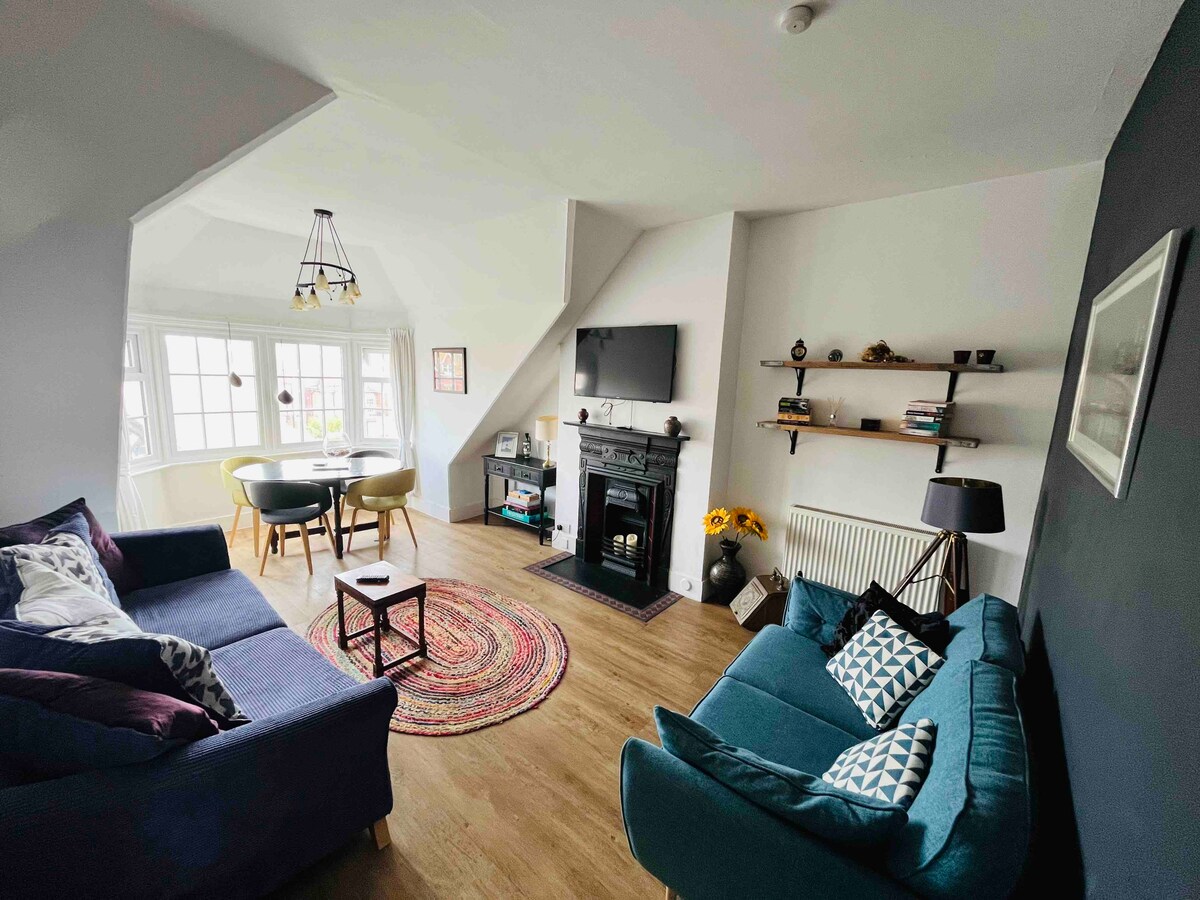 Gerai įrengtas pirmojo aukšto butas šalia jūros su vaizdu į jūrą, vos už 10 metrų yra jūra, gerai įrengtas vienas miegamasis, vonios kambarys su vonia ir dušu, didelė poilsio erdvė su originaliomis savybėmis ir aukštomis lubomis, įskaitant Viktorijos laikų karnizą, pėsčiomis pasieksite tenisą, teatrus, barus, restoranus, parduotuves ramiame Viktorijos laikų pastate, kuriame miegos iki trijų svečių. Leidžiama mokama automobilių stovėjimo aikštelė (ji apmokestinama vietoje) Poilsio kambaryje taip pat yra sofa-lova