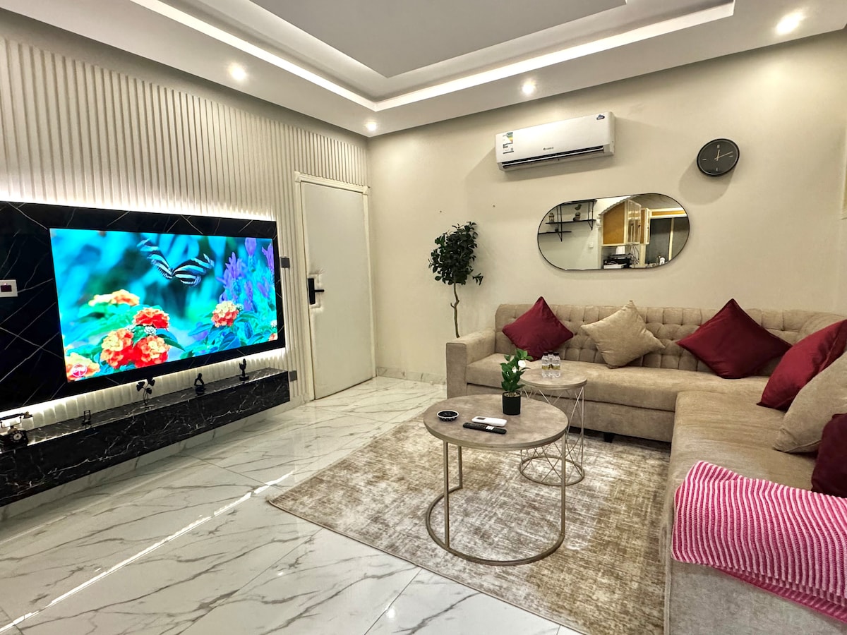 Suteikiame jums unikalų ir aukščiausios klasės būstą, kuriame yra visi patogumai, kurių nusipelnėte, o čia siūlome pramogų paslaugas iš „Netflix“ ir „Shahid“ prenumeratų, o čia gausite visišką privatumą ir savarankišką atvykimą išskirtinėje vietoje netoli visų turistinių ir paslaugų teikimo vietų