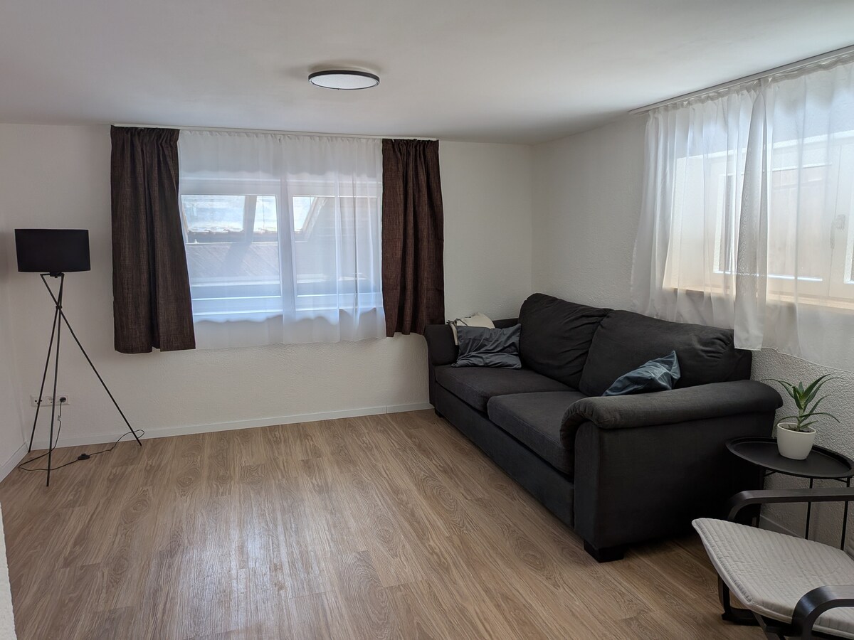 Gemütliche Mini Apartment (ca. 18 qm) im Kellergeschoss mit Tageslicht und eigenem Bad. Der Zugang zum Zimmer/Bad ist autark. Lage: Direkt unterhalb vom Schloss Solitude gelegen, direkt am Wald, Spielplatz, Bauernhof und U-Bahn (U6) Haltestelle (ca. 5 Min. zu Fuß). In ca. 25 Min. sind Sie mit der U-Bahn in Stuttgart am Hauptbahnhof / Schlossplatz. Gut ohne Auto erreichbar. Bitte mind. 24h vor Anreise die ungefähre Ankunftszeit mitteilen. Ansonsten ist ein flexibler CheckIn nicht gewährleistet.