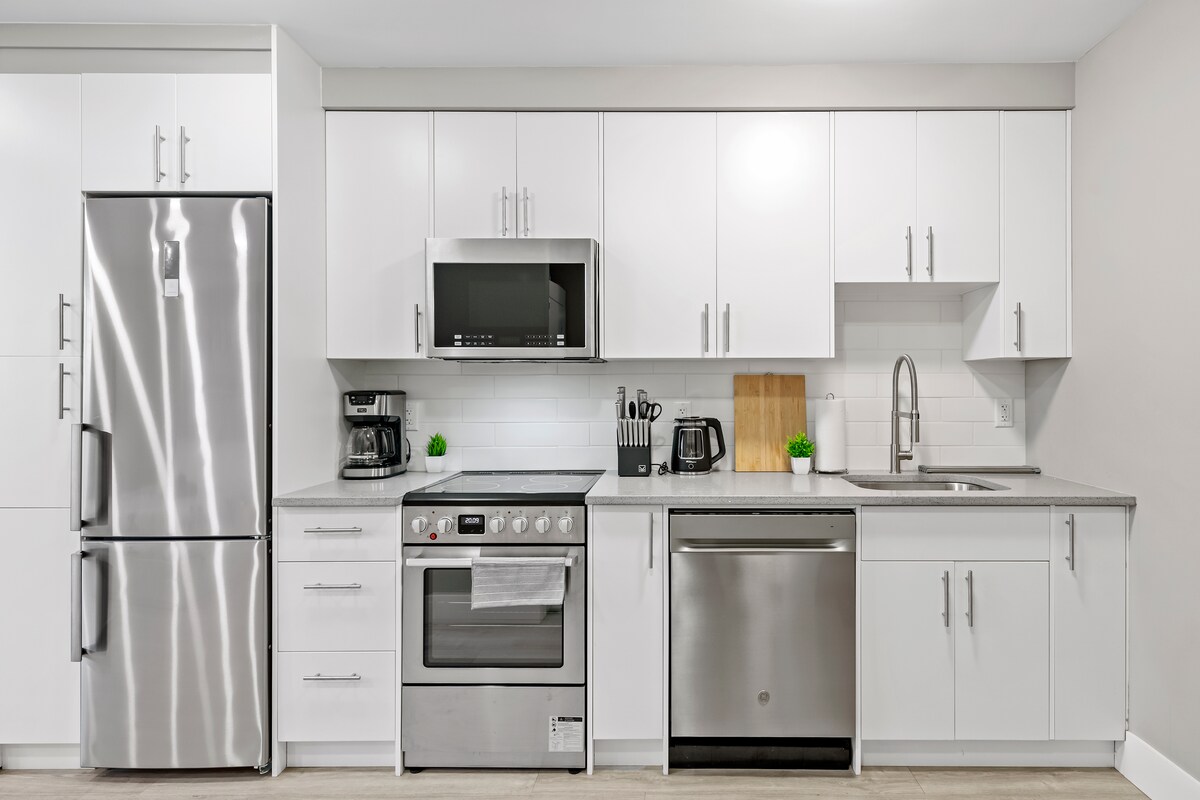 Pilnai įrengta virtuvė ir jaukūs baldai puikiai tinka ilgesnėms viešnagėms. Keliaudami naudokite baseiną ir sporto salę, kad išlaikytumėte pratybų rutiną. Mėgaukitės lengva prieiga prie visko - nuo šios puikiai įrengtos namų bazės. Iš balkono atsiveria stulbinantis miesto panoramos vaizdas. Vos keli žingsniai nuo kai kurių geriausių miesto restoranų, kavinių ir pramogų vietų, pėsčiomis iki „Rogers Place“, „MacEwan University“ ir greito tranzito iki Albertos universiteto.