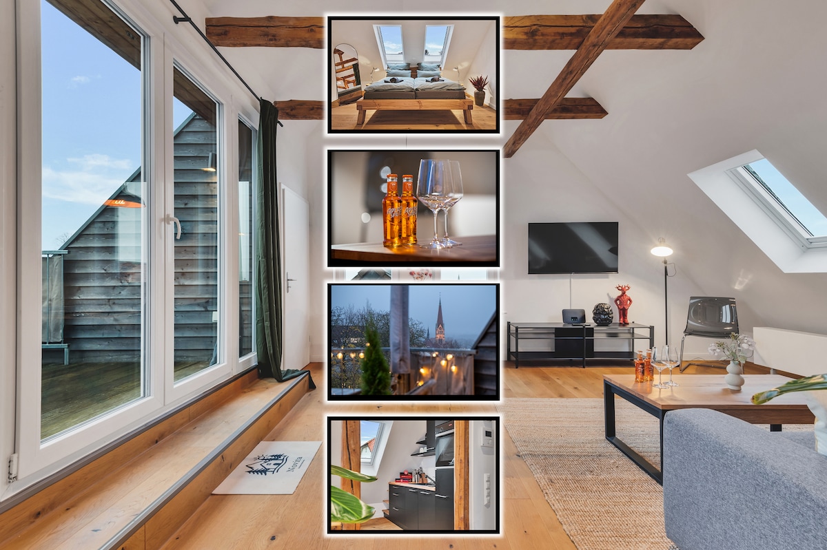 Nuoširdžiai kviečiame į mūsų tvarkingą ir modernų butą su nuostabiu vaizdu į Kvedlinburgo senamiesčio stogus. Įsikūrę pačiame istorinio Kvedlinburgo miesto centro pakraštyje, ramiame daugiabutyje (4 aukštas), iš čia galite lengvai pėsčiomis apžiūrėti viduramžių Kvedlinburgą. Turgaus aikštė yra už maždaug 15 minučių kelio, iki traukinių stoties - 12 minučių, iki autobuso - 4 minutės, o netoliese yra prekybos turgus.