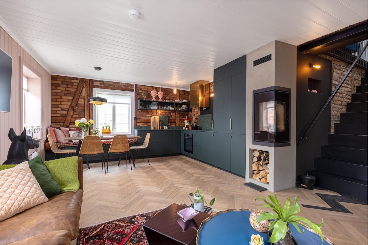 Atraskite menišką perlą istoriniame senamiestyje, pačioje Oslo širdyje! Ši stilinga ir pilnai įrengta šiaurietiška poilsiavietė pasižymi 3 m aukščio lubomis, gražiomis tinko detalėmis ir meno kūriniais kupinomis sienomis. Natūralioje šviesoje iš didelių langų ir židinio jis siūlo kūrybingą ir įkvepiančią šventovę. Gurkšnokite kavą su vaizdu, atsipalaiduokite saulėtoje ant stogo esančioje terasoje ir tyrinėkite geriausią Oslo gyvybingą kultūrą, parkus ir miesto gyvenimą - puikiai įsikūrę, kad patirtumėte tikrąją miesto dvasią!