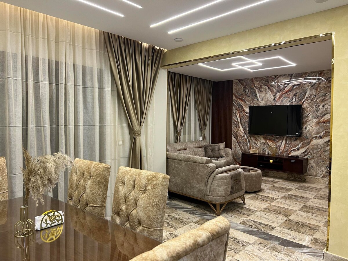 Prabangus būstas saugiame uždarame mišinyje! Šiame pilnai įrengtame viešbučio stiliaus bute yra modernus dekoras ir jis yra saugiame gyvenamajame komplekse su visą parą veikiančia apsauga. Jame yra 3 jaukūs miegamieji, stilinga svetainė su moderniais baldais, 2 švarūs vonios kambariai ir pilnai įrengta virtuvė su visais būtiniausiais reikmenimis. Visiškai oro kondicionierius su greitu ir nemokamu belaidžiu internetu. Ideali vieta — 3 minutės nuo Carrefour Al Maadi ir 1 minutė nuo žiedinio kelio