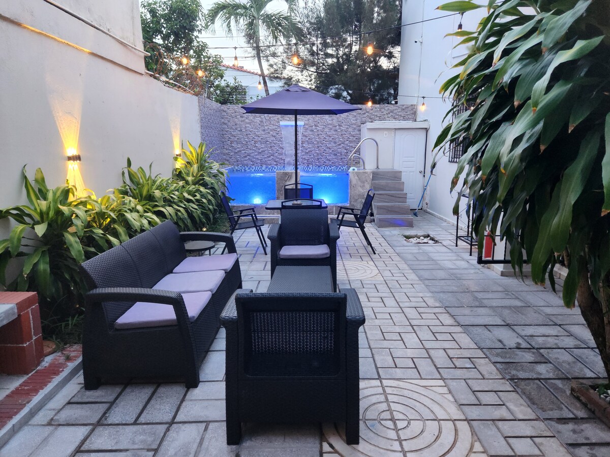 Privatus namas su baseinu, oro kondicionieriumi, Wi-Fi, kepsnine, Santo Dom.