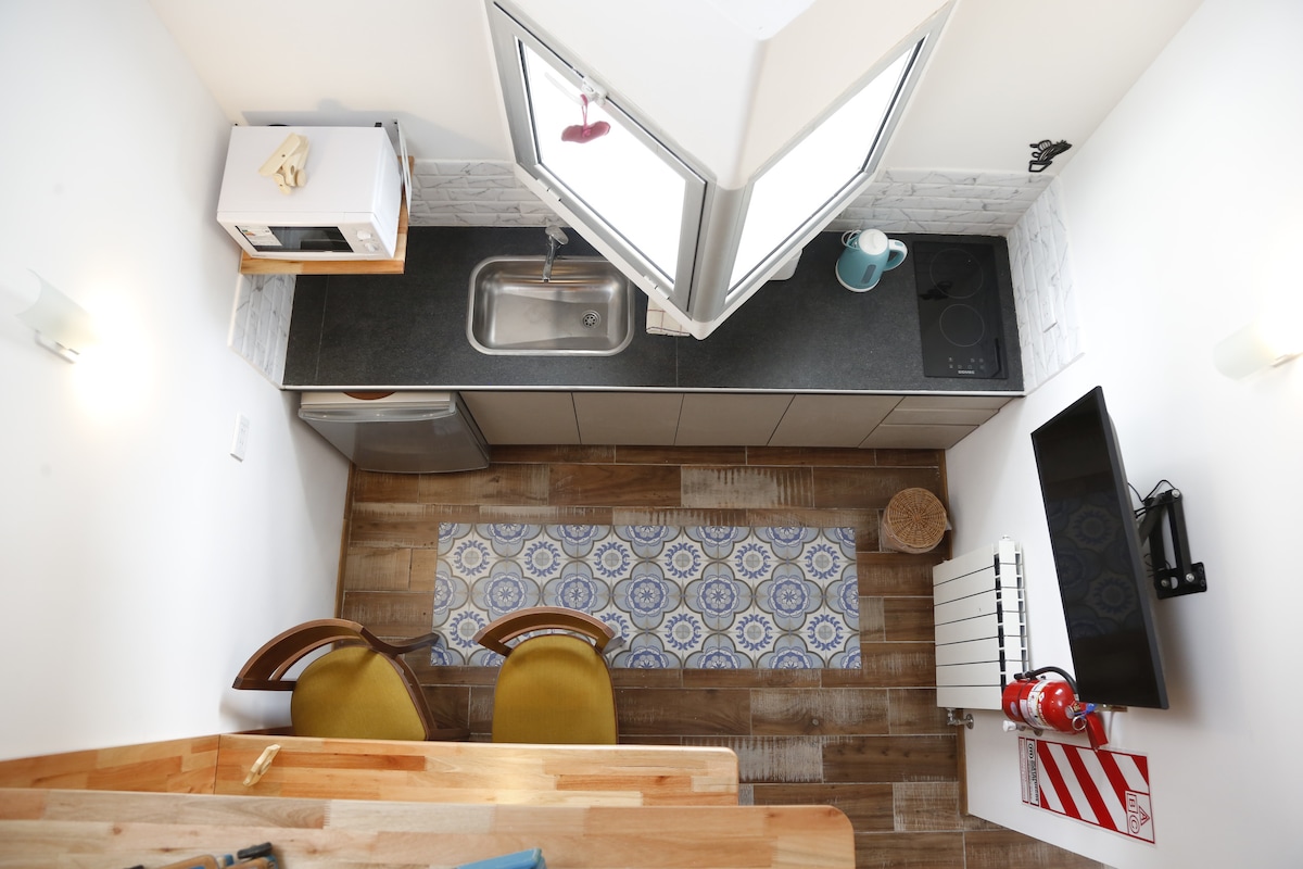 Maža lofto tipo studija su mikrobangų krosnele, karštu ir šaltu vandeniu bei indais. Nėra virtuvės, kurioje būtų galima išplauti indus. Yra atskiras įėjimas. „Fitz Roy“ nakvynės namuose kiekvieną rytą teikiami pusryčiai. Atidžiai perskaitykite! Jame nėra Wi-Fi, nes El Chaltén ryšys nėra geras, taip pat nėra televizoriaus. Nakvynės namų vestibiulyje yra belaidis internetas, tačiau ryšys paprastai būna nestabilus arba lėtas.