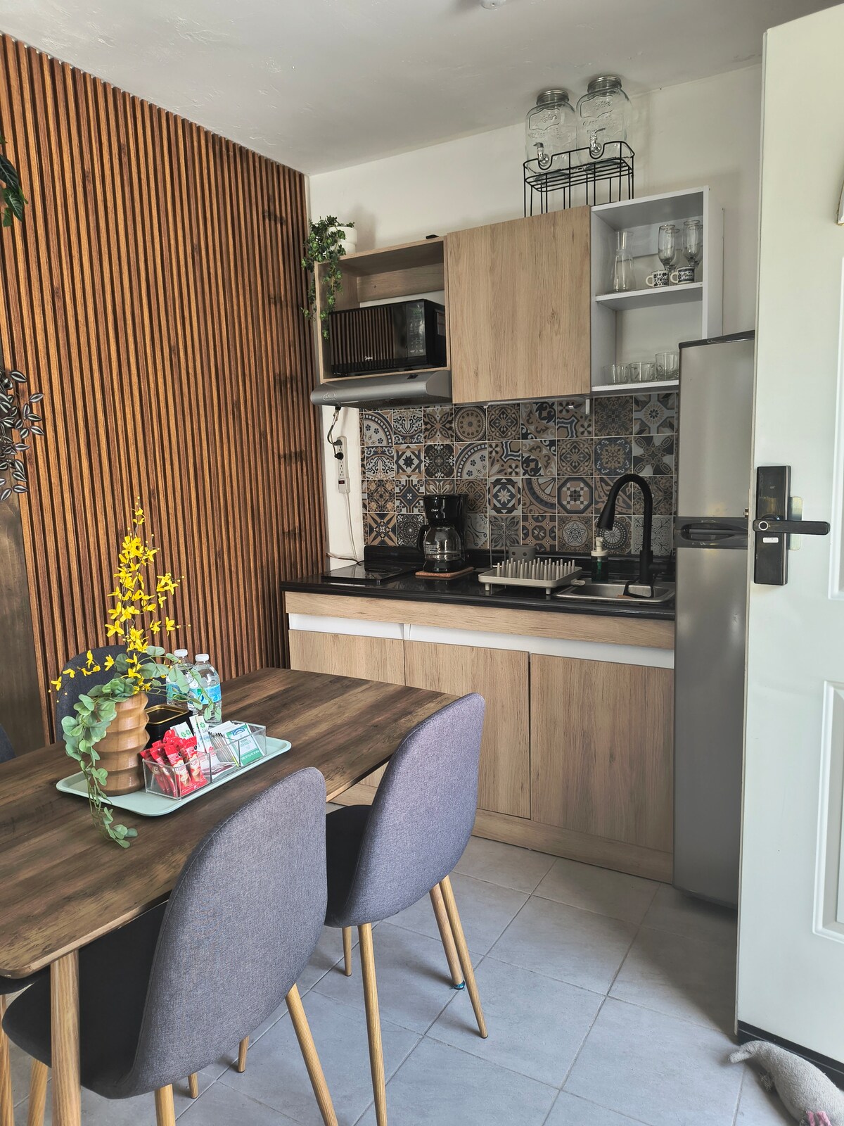 Modernus penkto aukšto butas su dviem miegamaisiais, bendru vonios kambariu ir pilnai įrengta virtuve su virykle, mikrobangų krosnele, indais, šaldytuvu ir šaldikliu. Turime liftą ir sodą ant stogo, kuriame galėsite mėgautis gražiais saulėlydžiais ir Tepejako kalvos vaizdais. Patogumai apima sporto salę, žaidimų kambarį, bendradarbystės erdvę, televizoriaus kambarį ir žaidimų kambarį, kuriais galima naudotis pateikus užklausą (už papildomą mokestį). Nėra automobilių stovėjimo aikštelės. Privatus įėjimas ir nemokamas spartusis belaidis internetas.