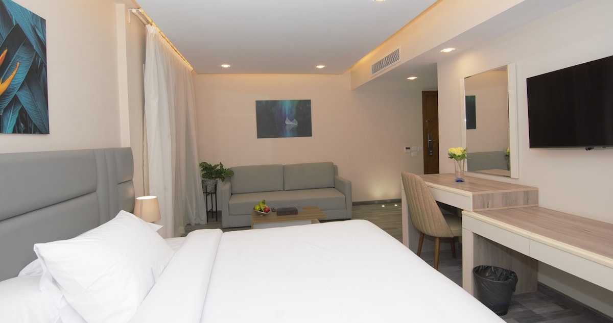 Our studios feature full kitchens and living areas, allowing you to cook, work, and entertain in style. Complimentary Wi-Fi is available throughout the premises. Immerse yourself in the true essence of well-being while admiring the panoramic waterfalls and lush landscapes surrounding our innovative serviced apartments.