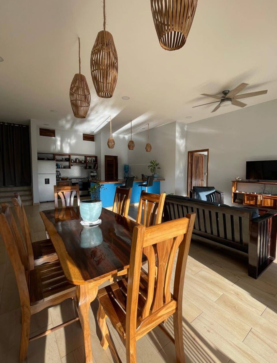Švarūs ir šviesūs namai San Chuan Del Sur, įsikūrę tarp vešlių atogrąžų medžių. Vos 5 min. pėsčiomis iki paplūdimio. 10-15 min. pėsčiomis nuo miesto. Netoli veiksmo, bet pakankamai toli, kad galėtumėte ramiai miegoti. Namai yra oazė, kurioje galėsite grįžti po dienos tyrinėjimo, kad išgertumėte stiklinę vyno terasoje, maudytis baseine, pavalgyti ant atviros stogo terasos, atsipalaiduoti ant hamako arba tiesiog žiūrėti filmą.