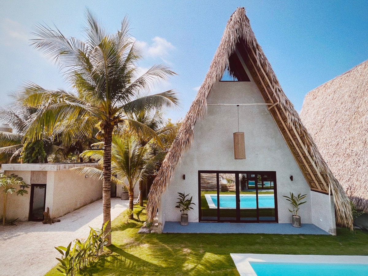 Pabėkite į romantišką paplūdimio namą su privačia prieiga prie jūros ir išskirtiniu baseinu. Socialinė erdvė, kurioje yra svetainė su lubiniais ventiliatoriais ir televizoriumi, valgomojo zona ir pagrindinė virtuvė su elektrine virykle, atsiveria į lauką ir sukuria puikią atogrąžų atmosferą. Tiesiai priešais šią vietovę yra dengtas baseinas ir atogrąžų sodas. Atsipalaiduokite miegamajame su oro kondicionieriumi. Wi-Fi yra visame name. Puikiai tinka poroms, ieškančioms privatumo ir ramybės paplūdimyje.