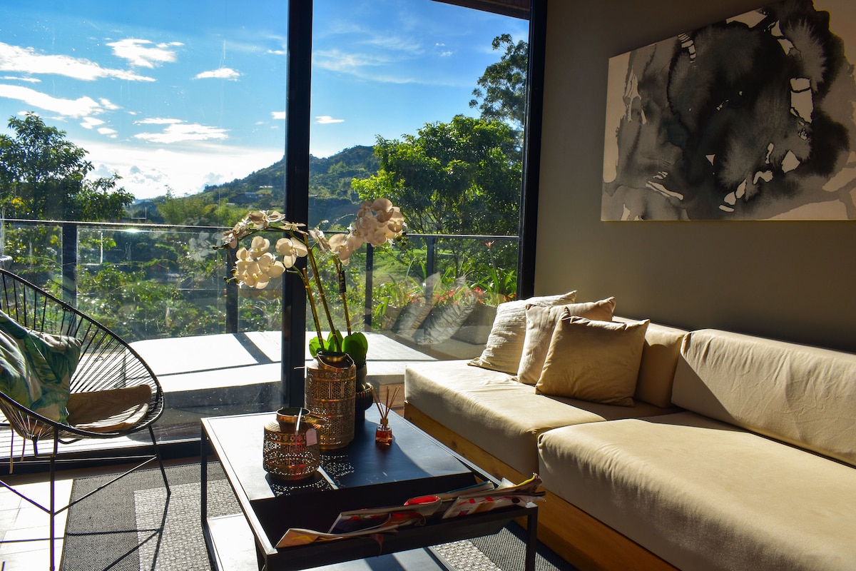 Our concept is privacy and comfort in the middle of nature, each room has a high standard king bed for your comfort, all rooms have a direct view of the lake, balcony and private bathroom; the jacuzzi located at the top of the mountain under the imposing eucalyptus trees . You will enter to the house through the mountain and through the roof, to find a cozy space with a wonderful view of the lake, with the most special details. Cook service . Paddle boards and canoe